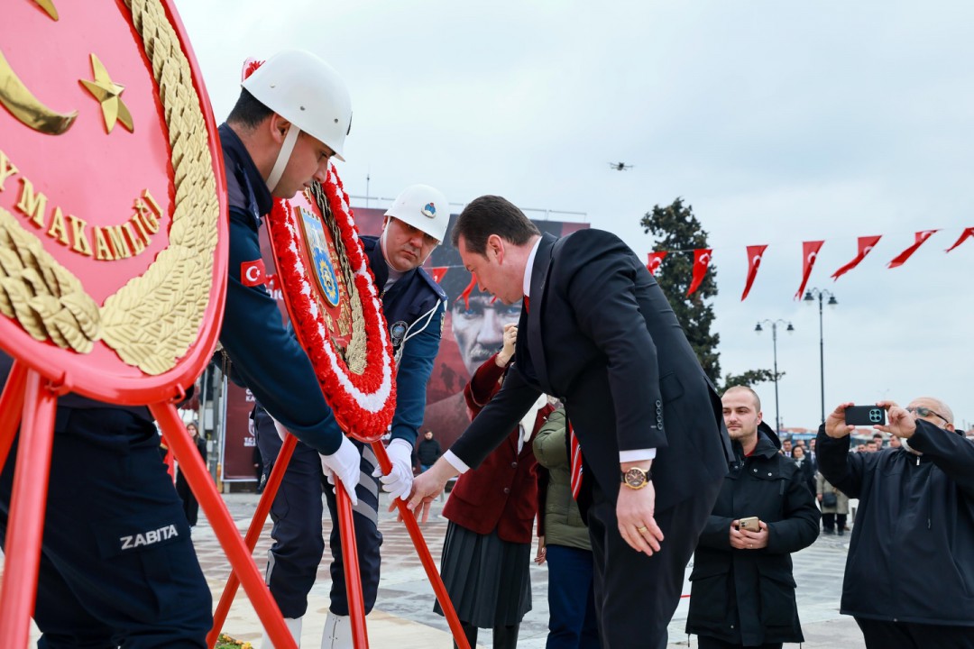 Silivri Belediye Başkanı Bora Balcıoğlu, 18 Mart Çanakkale Zaferi ve Şehitleri Anma Günü nedeniyle Ulu Önderimiz Gazi Mustafa Kemal Atatürk’ün manevi huzuruna çıkarak çelenk sundu. Törende emeği geçen herkese teşekkürlerini ileten Başkan Balcıoğlu, “Şanlı bayrağımız uğruna canlarını feda eden kahraman şehitlerimizi minnet, saygı ve rahmetle anıyoruz” ifadelerine yer verdi.