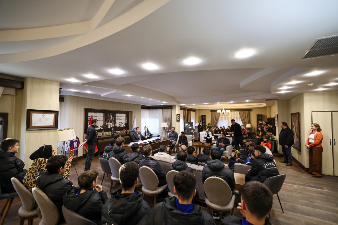 Silivri Belediye Başkanı Bora Balcıoğlu, Mimarsinan Spor Kulübü U-14 Futbol Takımı’nı, Sultangazi U-14 takımını 2-0 mağlup ederek Türkiye Finalleri’ne katılmaya hak kazanmalarının ardından belediyede ağırladı. Takıma başarılar dileyen Başkan Balcıoğlu, “Bu gurur verici başarıda emeği olan sporcularımızı, özveriyle emek veren antrenörlerimizi ve her zaman yanlarında olan değerli velilerimizi gönülden kutluyor; Türkiye Finalleri’nde takımımıza başarılar diliyoruz” ifadelerine yer verdi.
