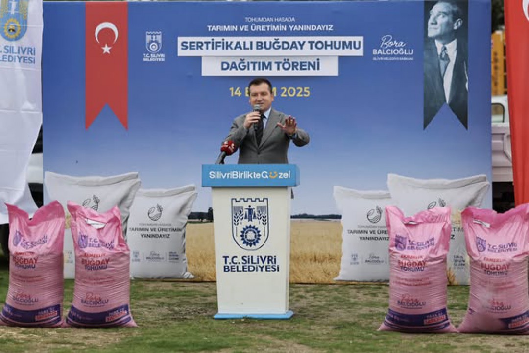 Silivri Belediye Başkanı Bora Balcıoğlu, törende yaptığı konuşmada, “Evet; Silivri Belediyesi olarak bugüne kadar arpa, silajlık mısır, tritikale, mazot, saman balyası, tohum ve fide dağıttık; hatta birçoğunu dağıtmaya da devam ediyoruz. Çiftçimizin elini güçlendiren, üretimi ayakta tutan pek çok adımı birlikte attık. 100 Milyon TL üzerinde tarımsal destek sağladık. Şimdi, şartlar bizi daha cesur bir hamleye çağırıyor” dedi.