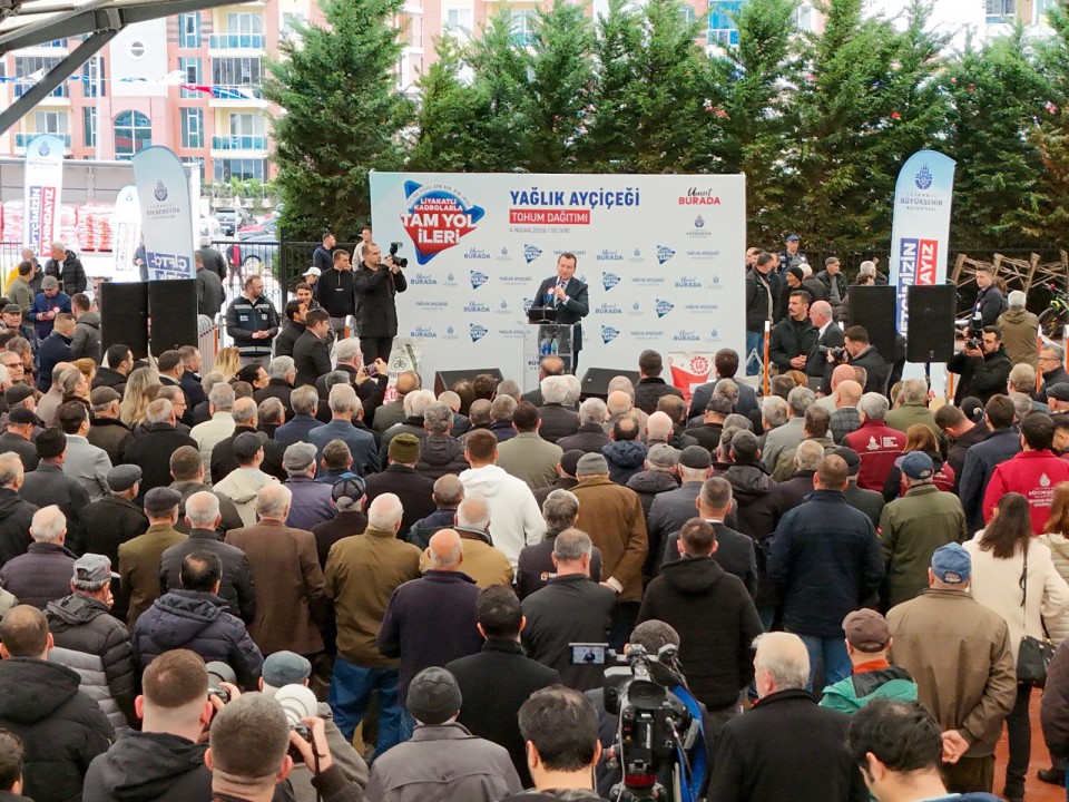 Silivri’de, İBB ve Silivri Belediyesi ortaklığıyla Yağlık Ayçiçeği Tohum Dağıtımı Töreni yapıldı. Törende konuşan İBB Başkan Vekili Nuri Aslan, herkese İstanbul Büyükşehir Belediye Başkanı Ekrem İmamoğlu’nun selamını getirdiğini söyledi.